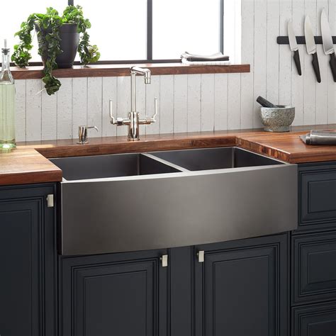 - Farmhouse sink with an apron front.