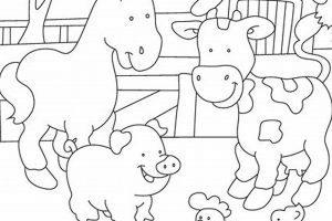 Illustrations depicting creatures commonly found on agricultural homesteads, designed to be colored, represent a readily accessible activity for children. These printable or purchasable designs provide outlines of cows, pigs, chickens, and other... Read more »